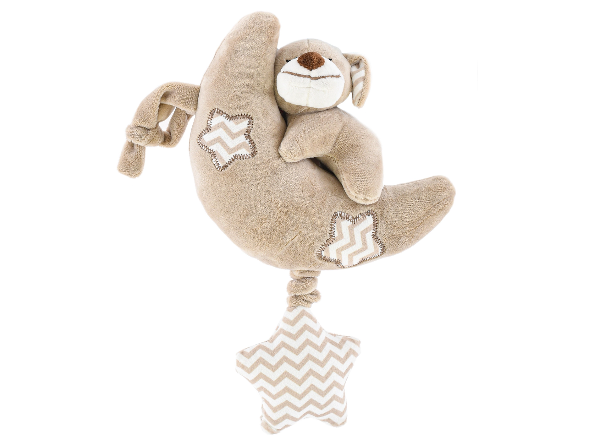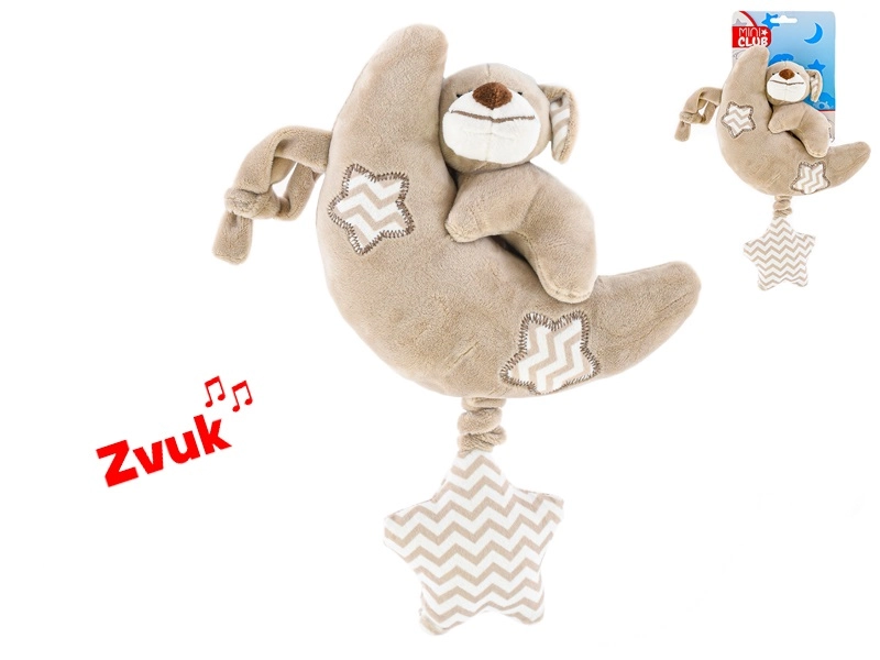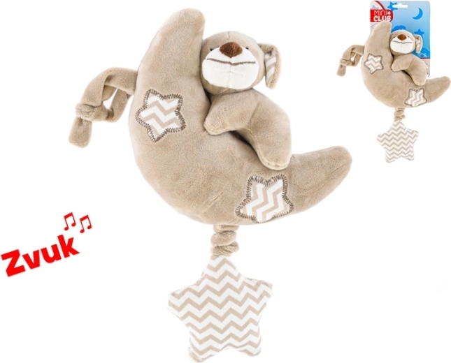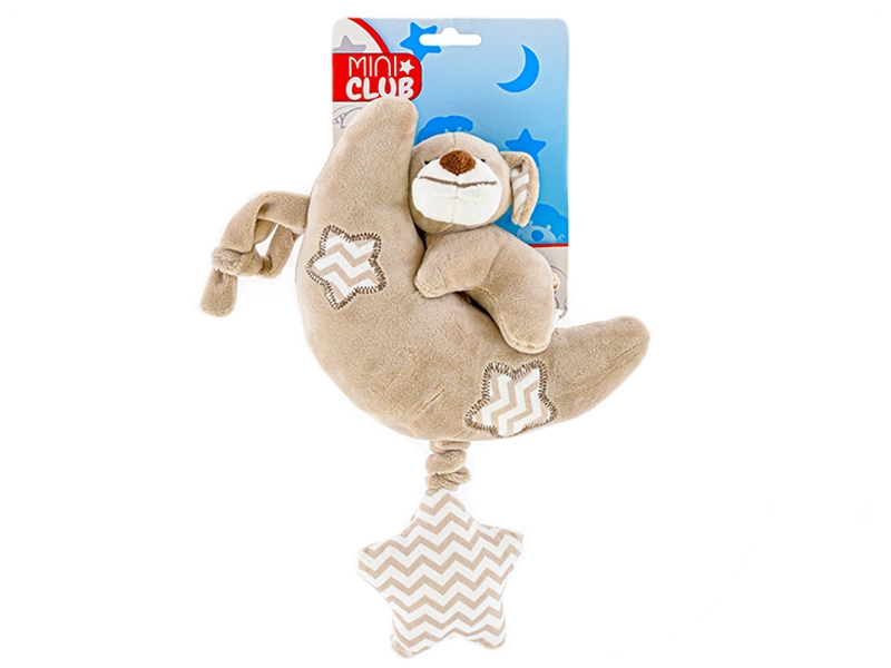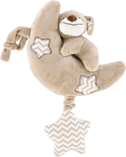 Plišan mjesečić sa psićem idealna je prva igračka za najmlađe. Spaja mekoću kvalitetnog pliša s melodijom na povlačenje, koja stvara ugodnu atmosferu za spavanje i odmor. Zahvaljujući univerzalnim bojama i simpatičnom izrazu djeca će je brzo zavoljeti.