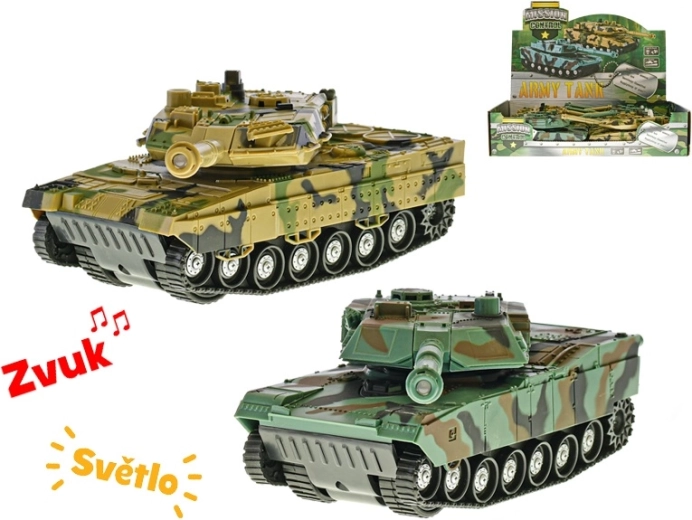 Ovaj robusni model tenka duljine 24 cm nudi izvrstan omjer detalja i izdržljivosti. Djeca se mogu veseliti brzoj i glatkoj vožnji zahvaljujući inercijskom pogonu te autentičnoj atmosferi uz svjetlosne i zvučne efekte. Tenk je dostupan u dvije varijante boja – zelenoj i smeđoj – i izrađen je od izdržljive plastike koja podnosi i intenzivnu igru.
