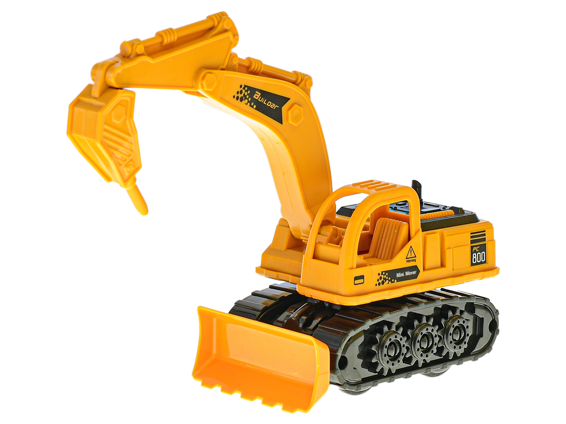 Zabavan i izdržljiv plastični bager na inercijski pogon razveselit će male graditelje realističnim izgledom i jednostavnim upravljanjem. Dostupne su dvoje vrste – s rovokopačem i s bušilicom. Zahvaljujući kompaktnoj veličini 18 cm odlično leži u dječjoj ruci i idealan je za igru kod kuće i na otvorenom. Pogodno za djecu od 3 godine.