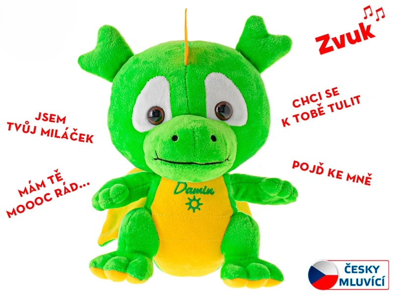Plišani zmajić Damin je mekan prijatelj koji će razveseliti svako dijete. Jednostavnim pritiskom na ručicu/šapicu pokreće hrvatske fraze koje potiču emocionalne veze i osjećaj sigurnosti. Zahvaljujući veličini od 19 cm lagan je za malu ruku te prikladan za putovanja i za krevetić.