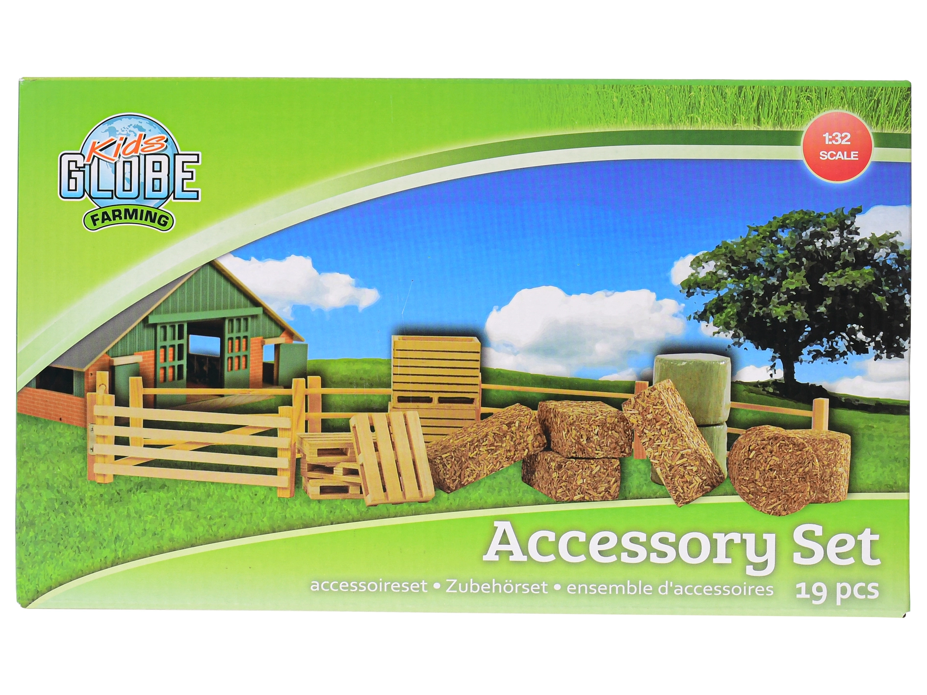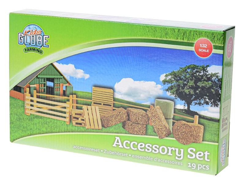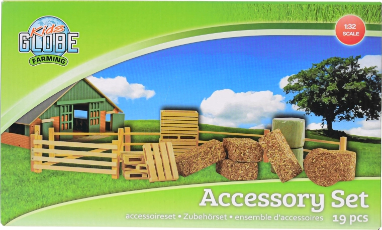 Sadržaj pakiranja uključuje sijeno, elemente ograda, hranilice i palete, pa ćete lako izgraditi torove, nahraniti životinje i uskladištiti hranu. Dodaci su kompatibilni s većinom farmi i traktora u mjerilu 1:32.