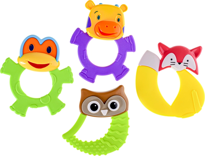 Praktična i simpatična grickalica u obliku životinjice donosi bebama olakšanje pri nicanju prvih zubića. Zahvaljujući kompaktnoj veličini od 11 cm dobro leži u malim ručicama i nježno masira desni. Na izbor su 4 vrste – sova, žaba, lisica i krava – u 3 varijante boja. Prikladno za djecu od 3 mjeseca. Ublažava bol u desnima, ergonomski oblik za lako držanje i razigran dizajn životinjica oduševit će svaku bebu.