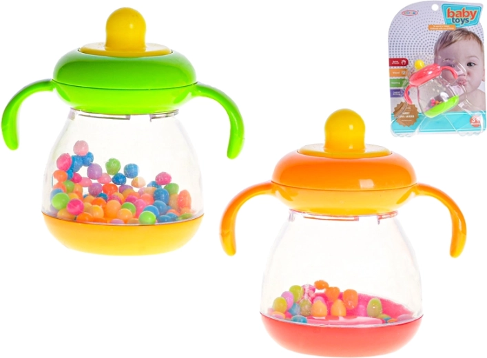 Prva zabava za najmlađe! Zvečka u obliku bočice dizajnirana je tako da ju beba lako primi, istražuje i sigurno koristi tijekom igre. Nježni zvukovi zveckanja potiču razvoj slušne percepcije, dok različite boje potiču vid i znatiželju.