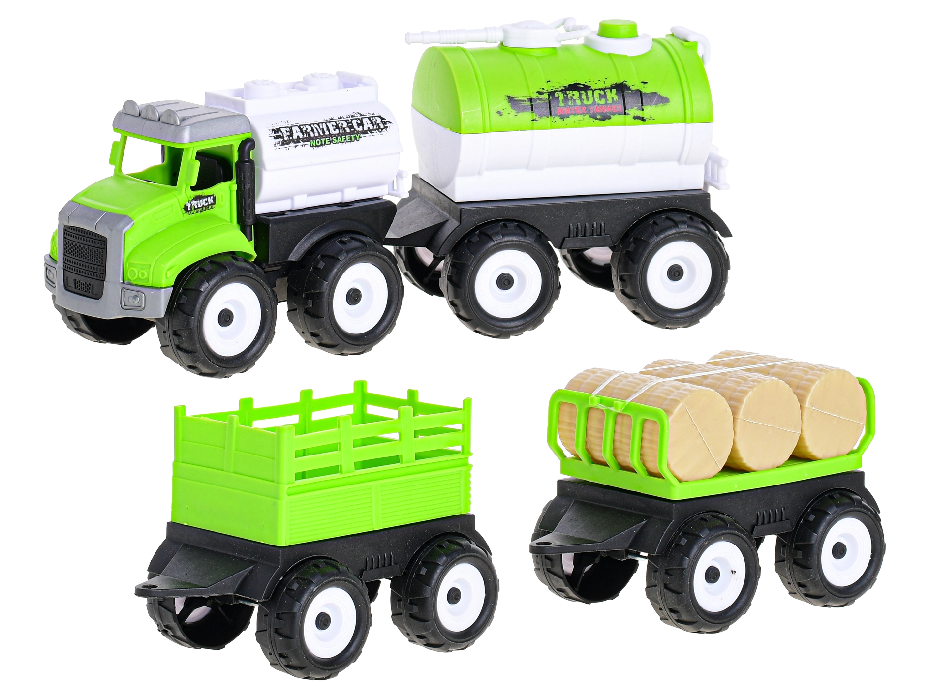 U pakiranju se nalaze čak tri prikolice koje proširuju mogućnosti igre: cisterna za prijevoz tekućina, prikolica za drva i univerzalni kiper. Djeca tako mogu stvarati raznolike scenarije te prirodno razvijati logičko razmišljanje i maštu.