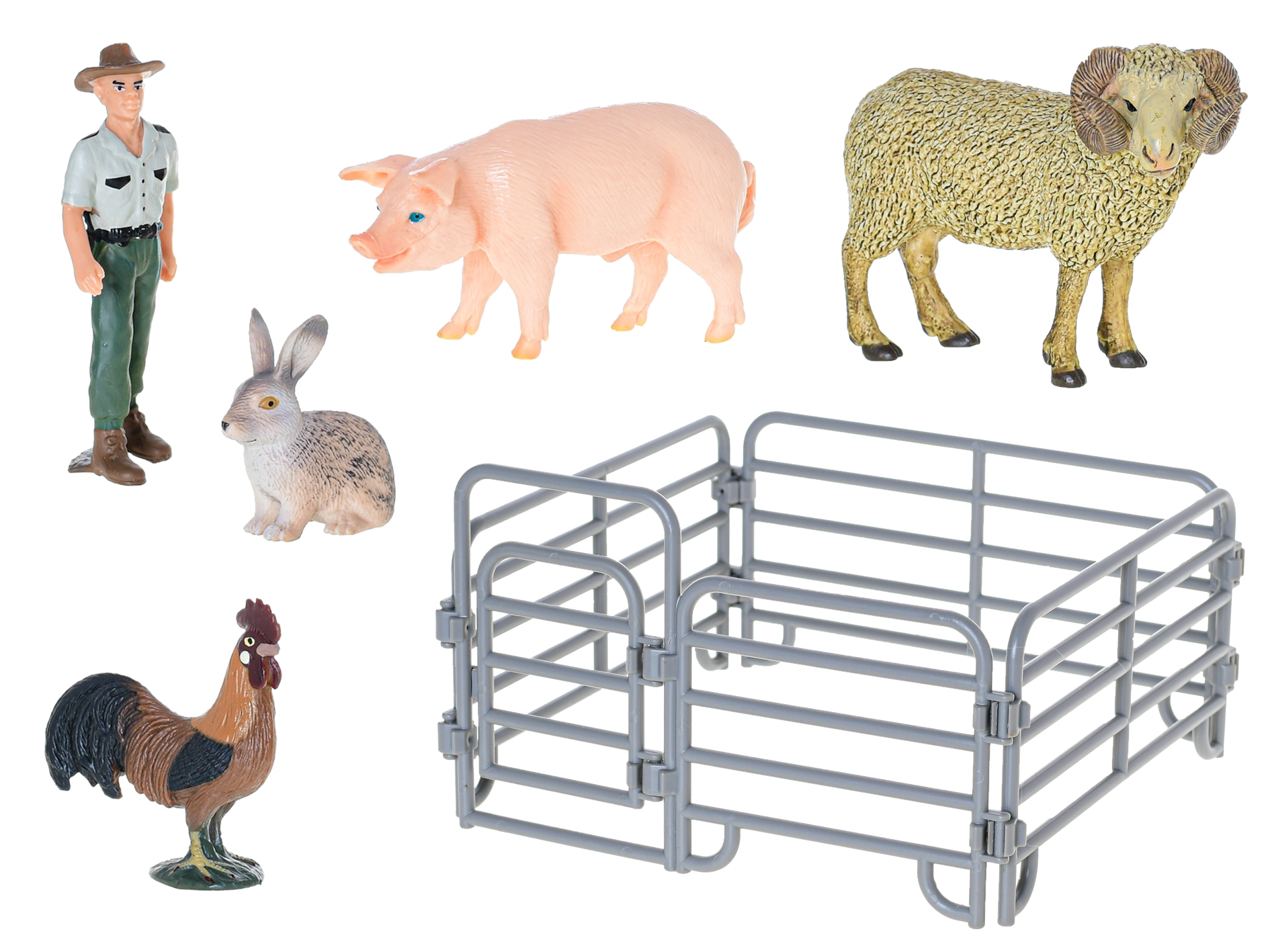 Ovan s izraženim spiralnim rogovima i svinja s detaljnim oslikavanjem potiču maštovitu igru i izgledaju odlično i u zbirci domaćih životinja.