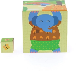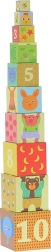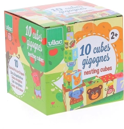 Ova šarena slagajuća kula brenda VILAC sadrži 10 čvrstih kartonskih kocaka s numeriranim stranama i ilustracijama životinja. Djeca mogu kocake slagati u visoku kulu ili ih umetati jednu u drugu, čime prirodno vježbaju računanje, razlikovanje veličina i ravnotežu.