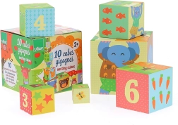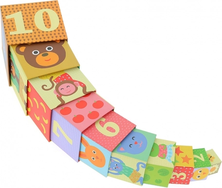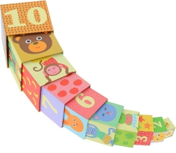 Svaka kocaka nosi brojeve 1–10, boje i motive životinja. Djeca kroz igru usvajaju brojanje te prepoznavanje oblika i uzoraka.