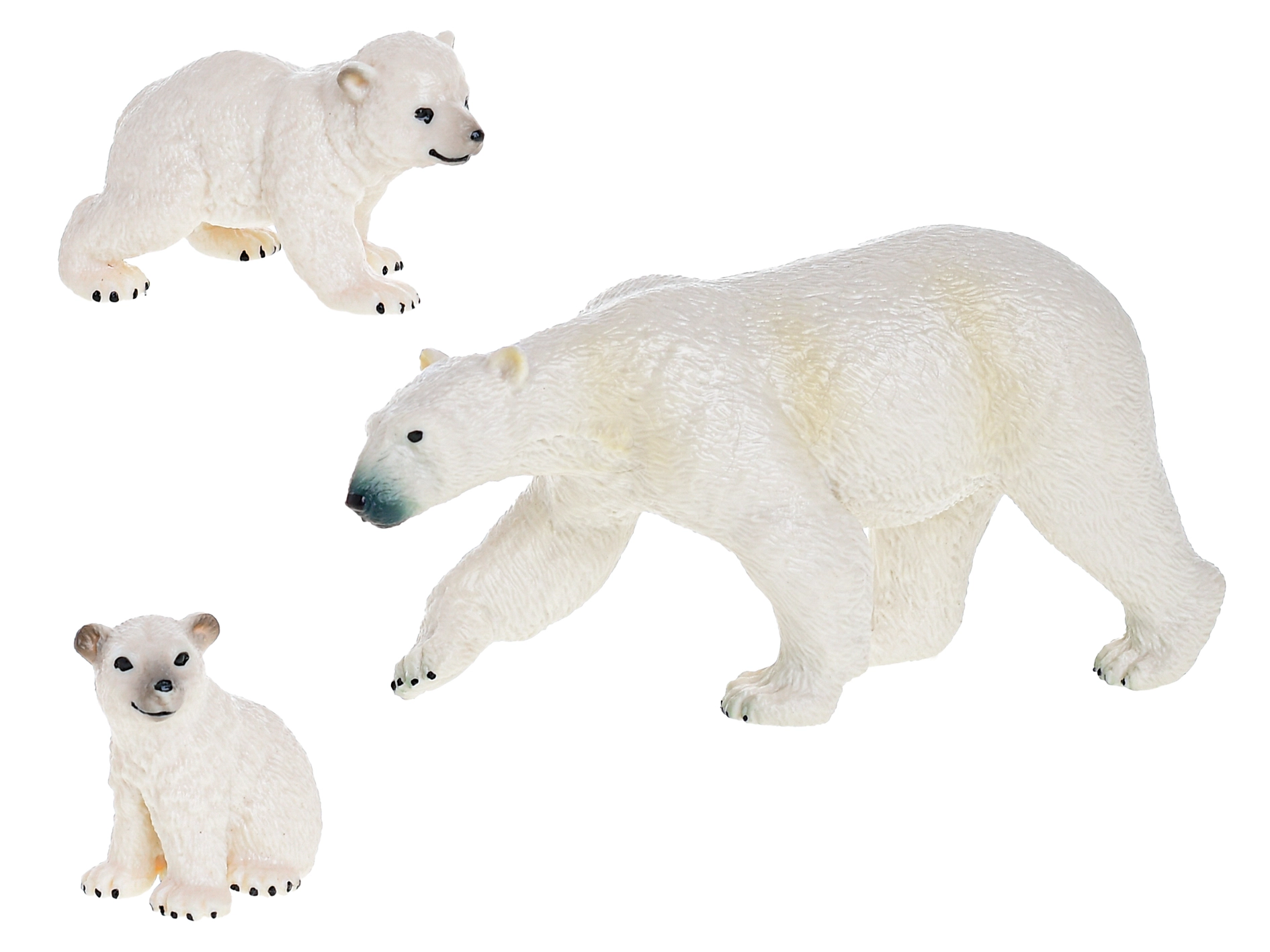 Detaljne teksture krzna, oblik njuške i šapa čine figurice vjernim modelima polarnih medvjeda – idealno za igru i edukativne aktivnosti.