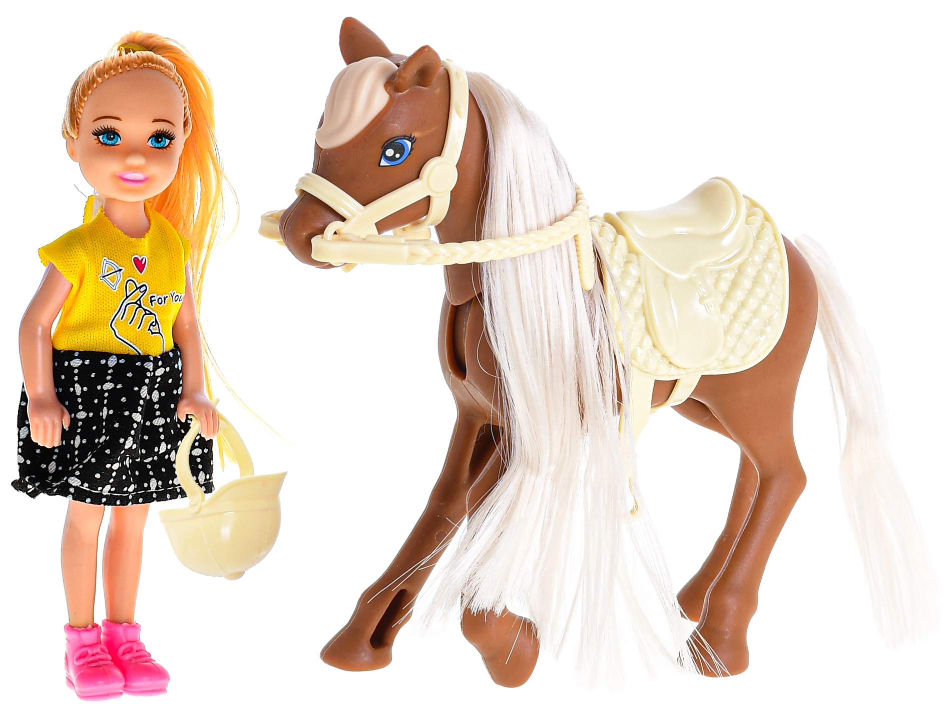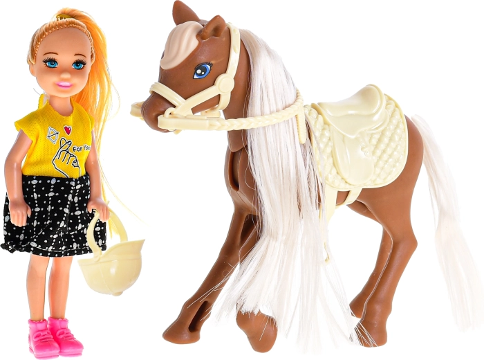 Otkrijte čaroliju jahanja s ovim slatkim setom lutke i konja, idealnim za male ljubitelje konja. Set uključuje lutku visoku 13 cm s jahačkom kacigom i konja visine 14,5 cm sa sedlom, zahvaljujući čemu djeca mogu lako oponašati stvarna jahačka iskustva, razvijati maštu i motoričke vještine. Igračka je izrađena od kvalitetne, izdržljive plastike i prikladna je za djecu od 3 godine.