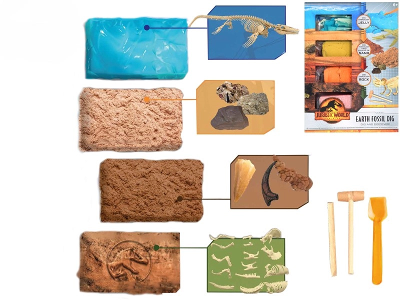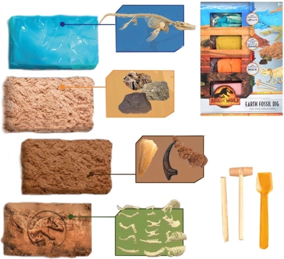 Uz set Jurski svijet vaše će se dijete prenijeti u pretpovijest i otkriti tajne drevnih bića. Svaki blok krije drugačiji dinosaurusov nalaz koji se postupnim iskapanjem može pažljivo otkriti. Zabavna aktivnost potiče koncentraciju i spretnost te donosi radost osobnog otkrića.