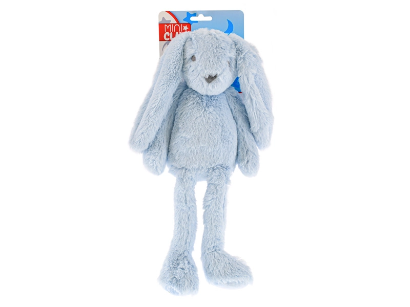 Slatki plišani zeko Mini Club u plavoj boji mekani je pratitelj za bebe i malu djecu. Zahvaljujući visini od 30 cm i dugim nožicama lako se hvata i malim ručicama. Izrađen je od mekanog 100% poliestera, ima certifikat Oeko‑Tex Standard 100 i prikladan je od rođenja. Za očuvanje mekoće preporučuje se ručno pranje.