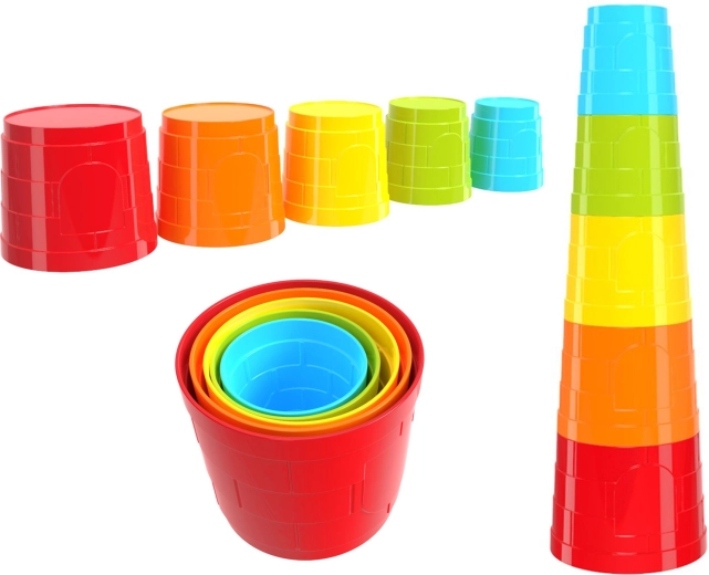 Otkrijte zabavnu i edukativnu igračku za najmlađe: sklopive čašice u živopisnim bojama. Set od pet čašica lako se slaže jedna u drugu i jednu na drugu te stvara kulu nalik dvorcu s prozorima. Igračka potiče finu motoriku, koordinaciju ruka–oko, logičko razmišljanje i učenje boja. Zahvaljujući izdržljivoj plastici pogodna je i za vodu, pa je odlična za igru u kadi i na suhom.