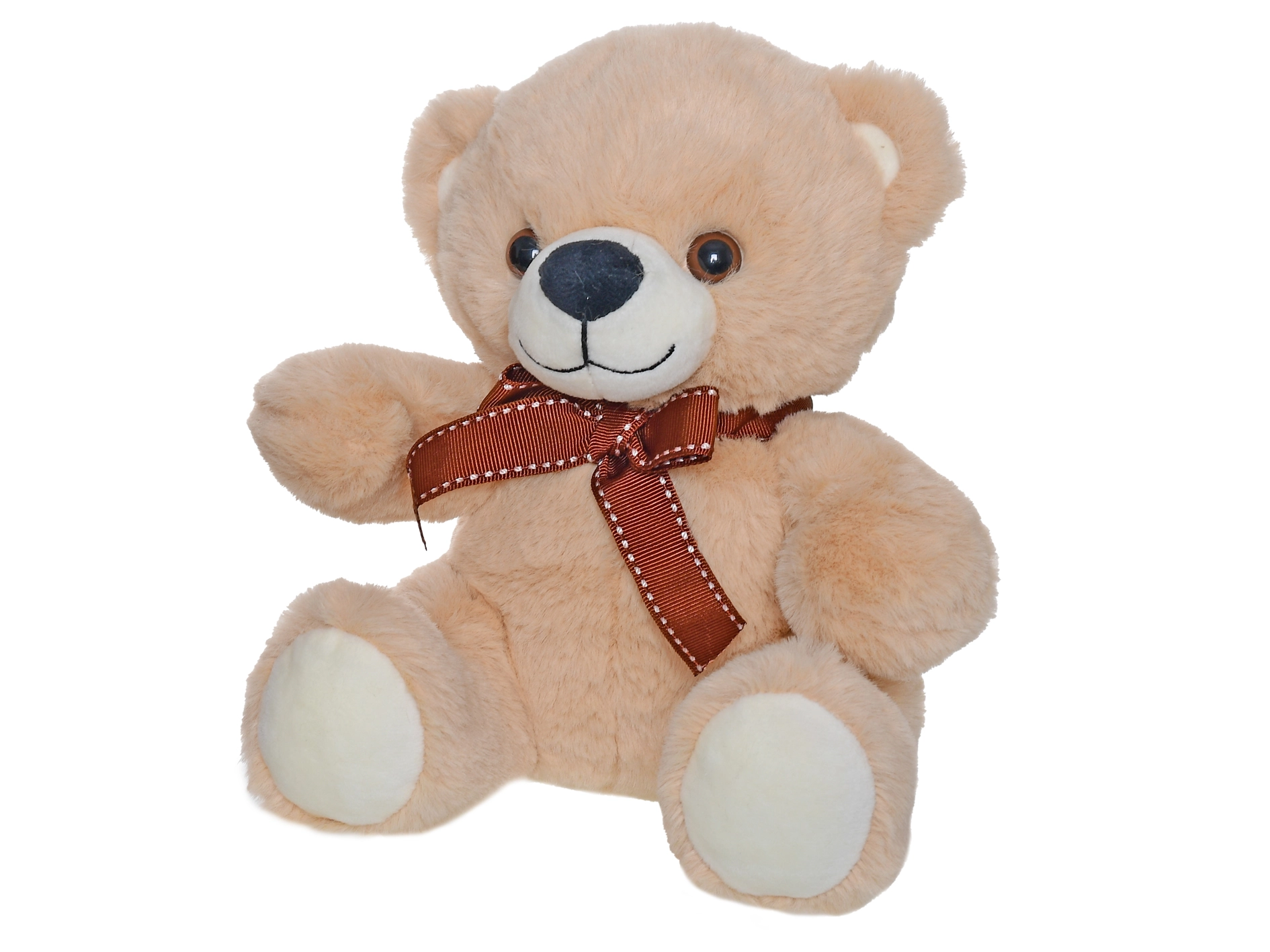Preslatka plišana medo visine 20 cm idealan je pratitelj za bebe i stariju djecu. Ima mekanu i nježnu površinu za maženje, elegantnu mašnu i pri pritisku ispušta zvučne efekte koji potiču senzorni razvoj. Baterije AG13 uključene su u pakiranje, tako da se djeca mogu igrati odmah nakon raspakiravanja.