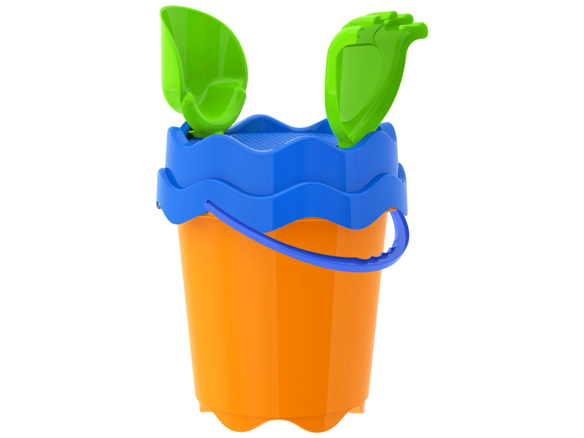 Komplet uključuje sve potrebno za zabavu na svježem zraku – od kantice promjera 17 cm do praktičnog sita. Atraktivna narančasta boja privlači pažnju i potiče na dužu igru. Pakiranje u mrežici olakšava sušenje, prenošenje i pospremanje igračaka nakon igre.