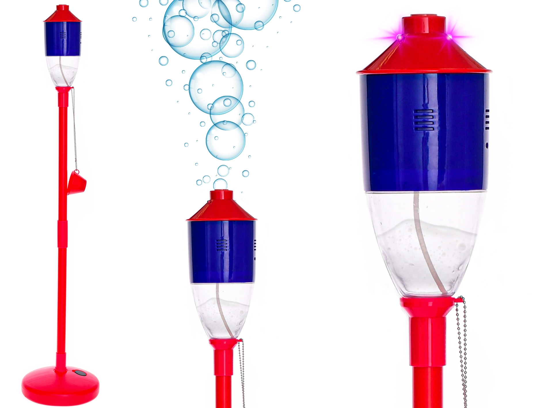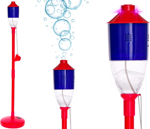 Stvorite nezaboravnu zabavu u svom vrtu ili kraj bazena. Ovaj originalni puhač mjehurića nalik baklji, nakon punjenja spremnika otopinom i uključivanja, automatski puše mjehuriće i svijetli, pa je idealan i za večernje proslave. Zahvaljujući lakom sastavljanju i praktičnom radu na baterije spreman je za trenutačnu upotrebu.