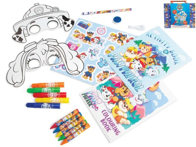 Otkrijte zabavu s junacima iz serije PAW PATROL u praktičnom kreativnom setu u koferčiću. Djeca će uživati u bojankama, aktivnostima, naljepnicama i maskama za bojanje, koje razvijaju kreativnost i finu motoriku. U kompletu su i flomasteri, voštane boje, olovka i gumica za trenutačno stvaranje kod kuće i na putu.