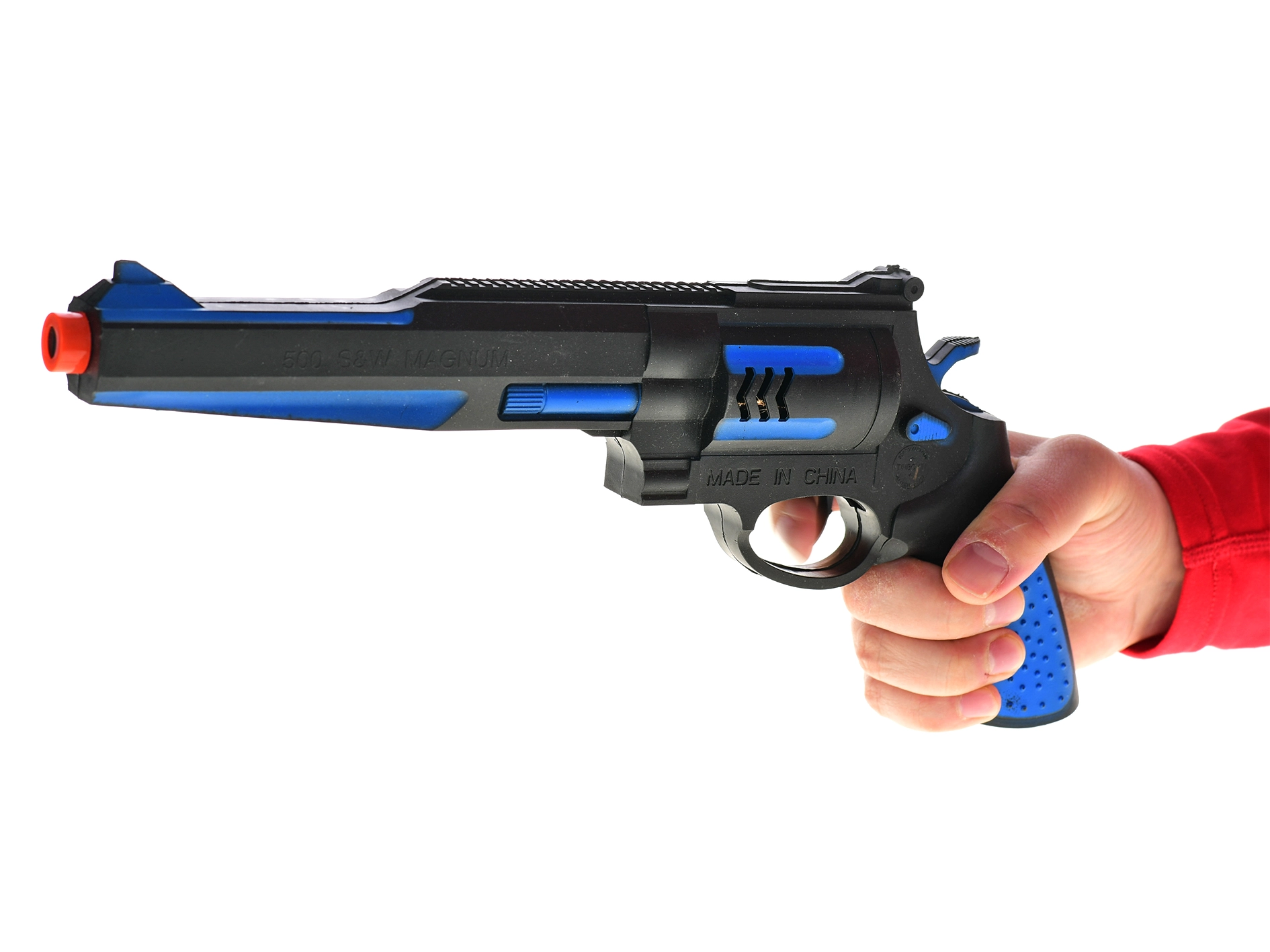 Ovaj dječji pištolj dužine 35 cm nudi uzbudljivu akcijsku zabavu bez potrebe za baterijama. Zamašnjak mehanizam osigurava gladak rad, a efekt iskrenja pojačava atmosferu igre bez predstavljanja opasnosti. Laka konstrukcija prilagođena je malim rukama i potiče prirodan hvat.