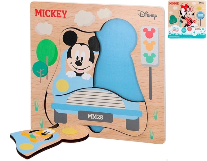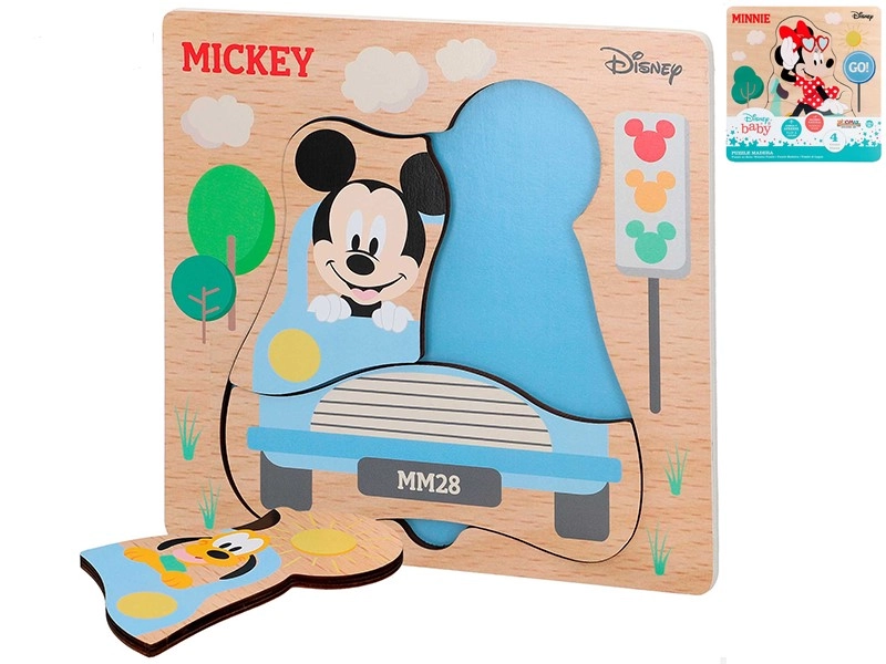 Priredite svom djetetu prve uspjehe u slaganju s drvenim puzzlama DISNEY. Veliki, čvrsti dijelovi i omiljeni likovi MICKEY i MINNIE motiviraju na igru i učenje. Dimenzija 21 × 21 cm idealna je za male ruke i sigurno igranje.