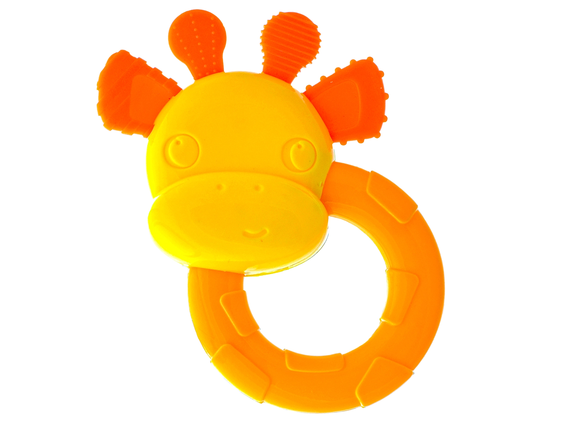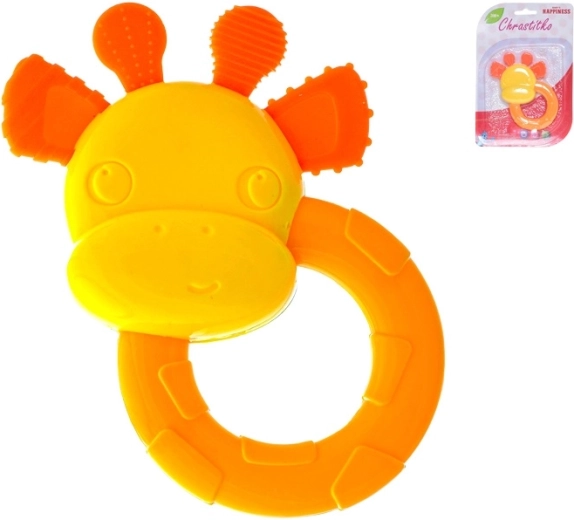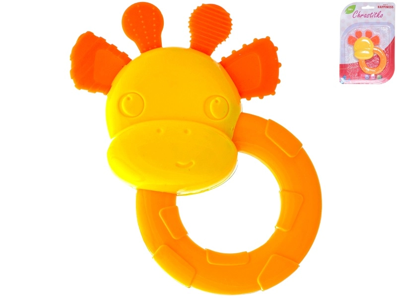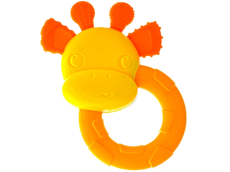 Slatka zvečkica i grickalica u obliku žirafe razveselit će bebe već od 3 mjeseca. Spaja stimulaciju osjetila s olakšanjem tijekom nicanja zubića. Zahvaljujući laganom i lako prihvatljivom dizajnu potiče finu motoriku i koordinaciju. Živopisne boje privlače pažnju, a sigurni, lako perivi materijali osiguravaju higijensko korištenje kod kuće i na putu.