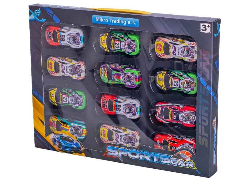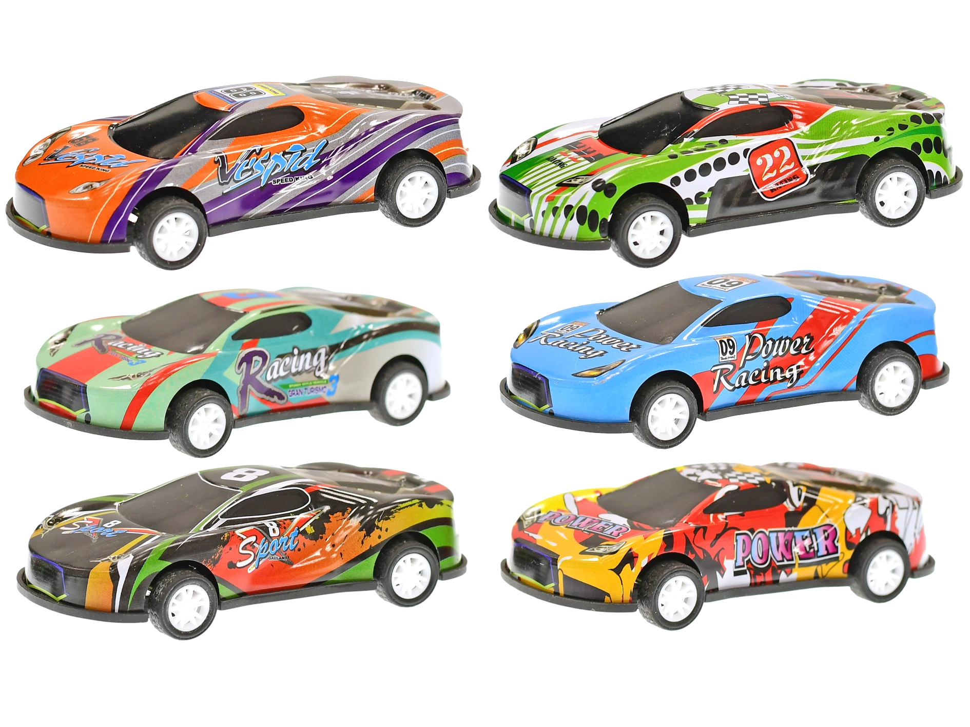 Zabavan set trkaćih autića duljine 8,5 cm razveselit će male ljubitelje automobilizma. Svaki model izrađen je od izdržljive kombinacije metala i plastike te ima mehanizam povratnog navijanja za brz start naprijed. Pakiranje sadrži 12 šarenih autića koji potiču razvoj motorike, mašte i natjecateljskog duha. Pogodno za djecu od 3 godine.