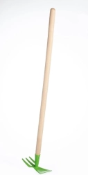 Dvostrana glava omogućuje okopavanje, rahljenje i plijevljenje gredica, dok kompaktne dimenzije olakšavaju sigurno korištenje. Idealno za učenje osnova vrtlarstva i razvoj motorike.