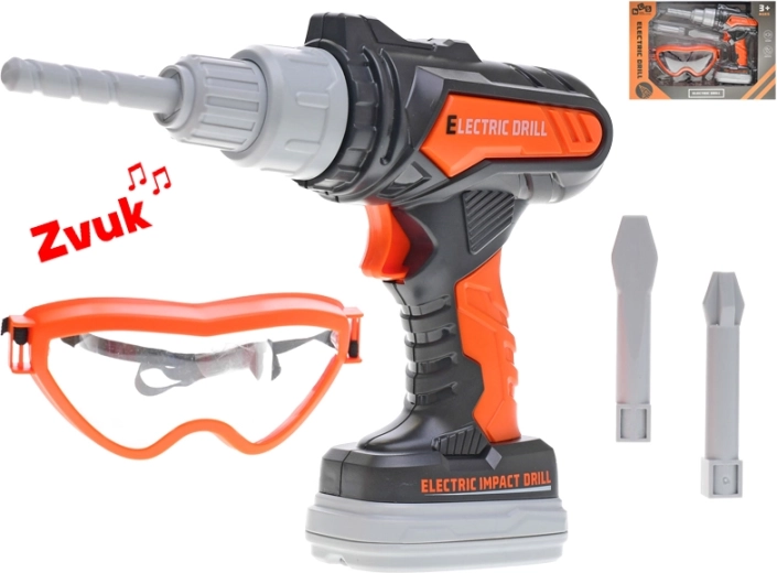 Dio seta su dva zamjenjiva svrdla i zaštitne naočale veličine 14,5 cm, koje na zabavan način uče djecu sigurnom rukovanju alatima. Igračka je izrađena od izdržljive plastike i napaja se s 2× AA baterijama (nisu uključene). Pakiranje u praktičnoj kutijici čini je idealnim poklonom za male ljubitelje popravaka i gradnje.
