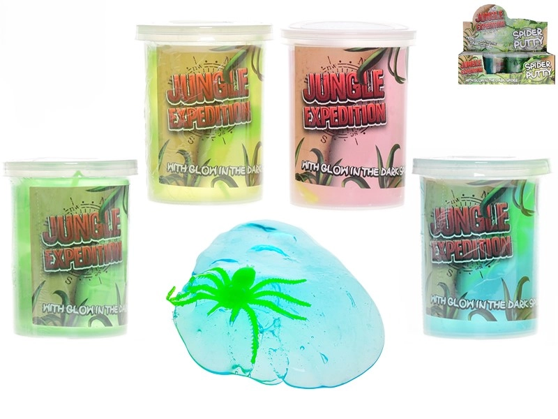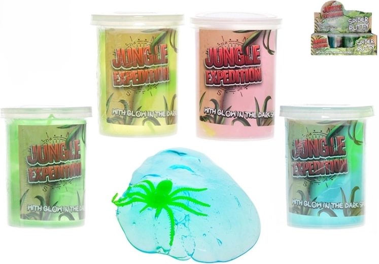 Jungle Expedition svjetleći slajm s paukom odličan je izbor za male istraživače. Unutar šarene mase skriva se mali pauk koji nakon izlaganja svjetlu svijetli u mraku i daje igri tajanstvenu atmosferu. Zahvaljujući kompaktnoj prozirnoj čašici, slajm je lako prenosiv i uvijek spreman za igru kod kuće i na putu.