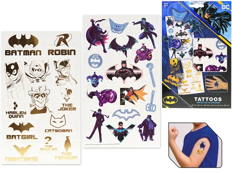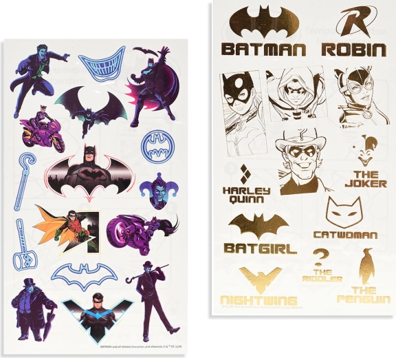 Probudi dječju maštu privremenim tetovažama nadahnutima DC svijetom. Dva lista šarenih stripovskih motiva pružaju sate zabave i jednostavnu primjenu bez nereda – dovoljna je voda i nekoliko sekundi pritiska.