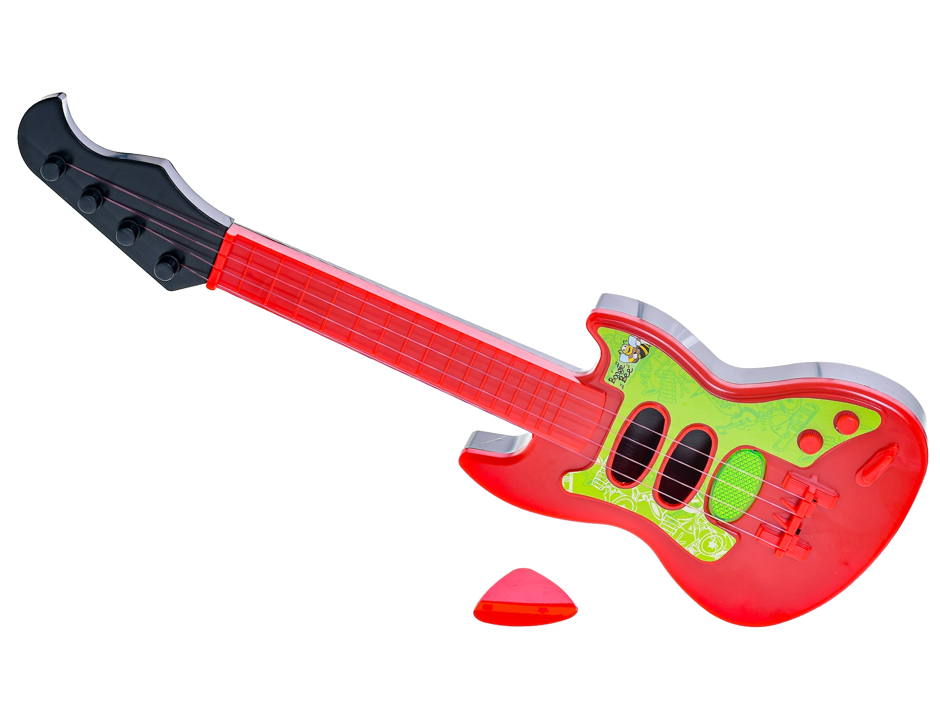 Praktična trzalica smještena na stražnjem dijelu gitare uvijek je pri ruci, tako da ništa ne ometa trenutačno sviranje. Instrument potiče kreativnost, motoriku i glazbeni sluh, i to na zabavan način već od najranije dobi. Gitara dolazi u kutiji, što je čini izvrsnim poklonom za male glazbene entuzijaste.