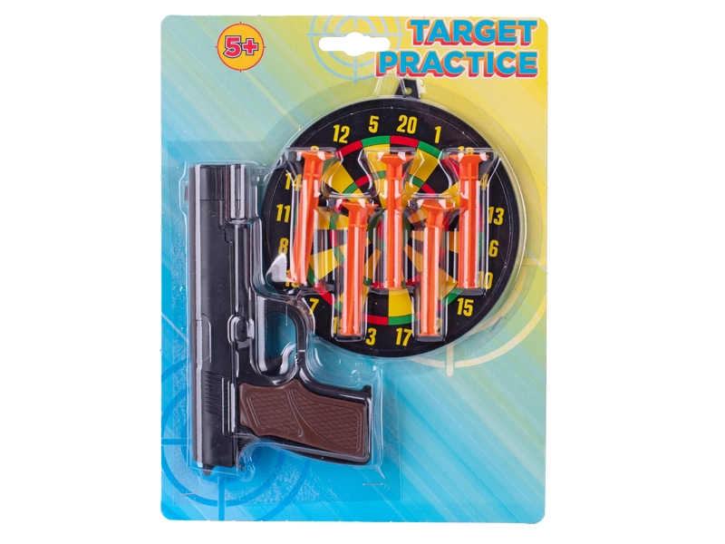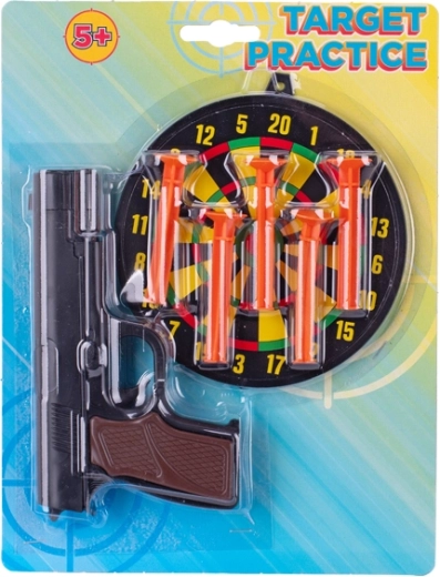 Zabavna i sigurna igračka za male strijelce – dječji pištolj na ventuze duljine 15 cm s metom. Zahvaljujući mekim mecima s ventuzama pucanje je sigurno i prikladno za djecu od 5 godina. U pakiranju je meta za vježbanje preciznosti, koja potiče koordinaciju pokreta i razvija finu motoriku. Dostupan u dvije varijante boja – s crnom ili srebrnom cijevi.