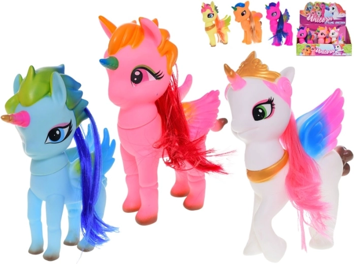 Preslatka figurica jednoroga visine 20 cm oduševit će djecu i roditelje svojim šarenim dizajnom i detaljnom izradom. Dostupna je u 6 boja, izrađena od izdržljive plastike i savršeno se uklapa za igru i dekoraciju dječje sobe. Prikladno za djecu od 3 godine.