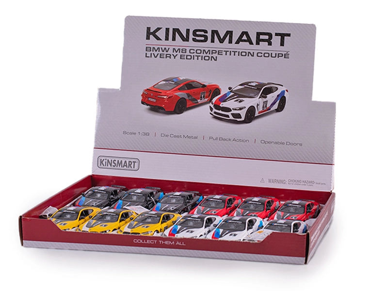 Stilski metalni model BMW M8 Competition Coupé u mjerilu 1:38 oduševit će i kolekcionare i djecu. Nudi otvarajuća vrata, zabavni pull-back pogon te kvalitetnu kombinaciju metala i plastike za izdržljivost i dug vijek trajanja. Duljina 13 cm, četiri varijante boja. Pogodno od 3 godine.
