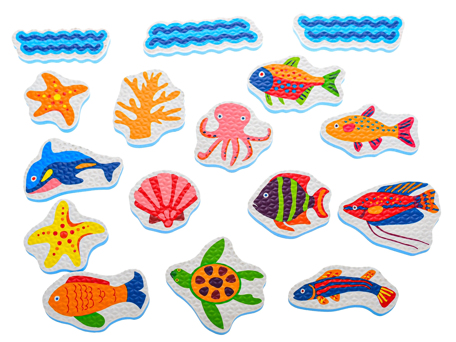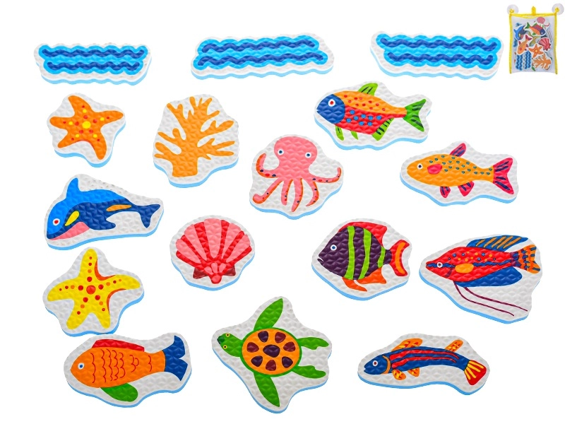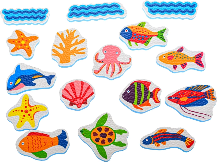 Pjenaste naljepnice za kadu s morskim životinjama pretvaraju svako kupanje u razigranu avanturu. Djeca mogu stvarati vlastite podmorske priče, učiti boje i oblike te istovremeno vježbati finu motoriku. Laganе pjenaste figurice nakon kvašenja prianjaju na glatke površine poput pločica ili stijenki kade, a nakon igre jednostavno ih pohranite u priloženu mrežicu.