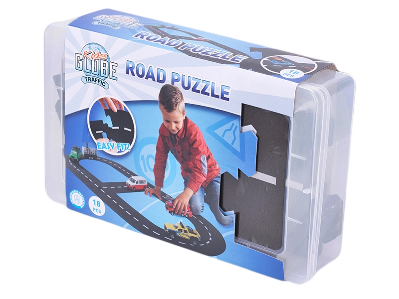Otkrijte zabavnu i kreativnu autodrom stazu Kids Globe Traffic koja spaja kreativno slaganje s uzbudljivom vožnjom. Zahvaljujući 18 puzzle dijelova djeca lako slažu vlastite cestovne kružne staze ukupne dužine 307,5 cm. Fleksibilni gumeni materijal omogućuje stvaranje raznih zavoja i kombinacija te potiče motoriku, koordinaciju i maštu. Idealno za igru u kući i na otvorenom; autići nisu dio pakiranja.