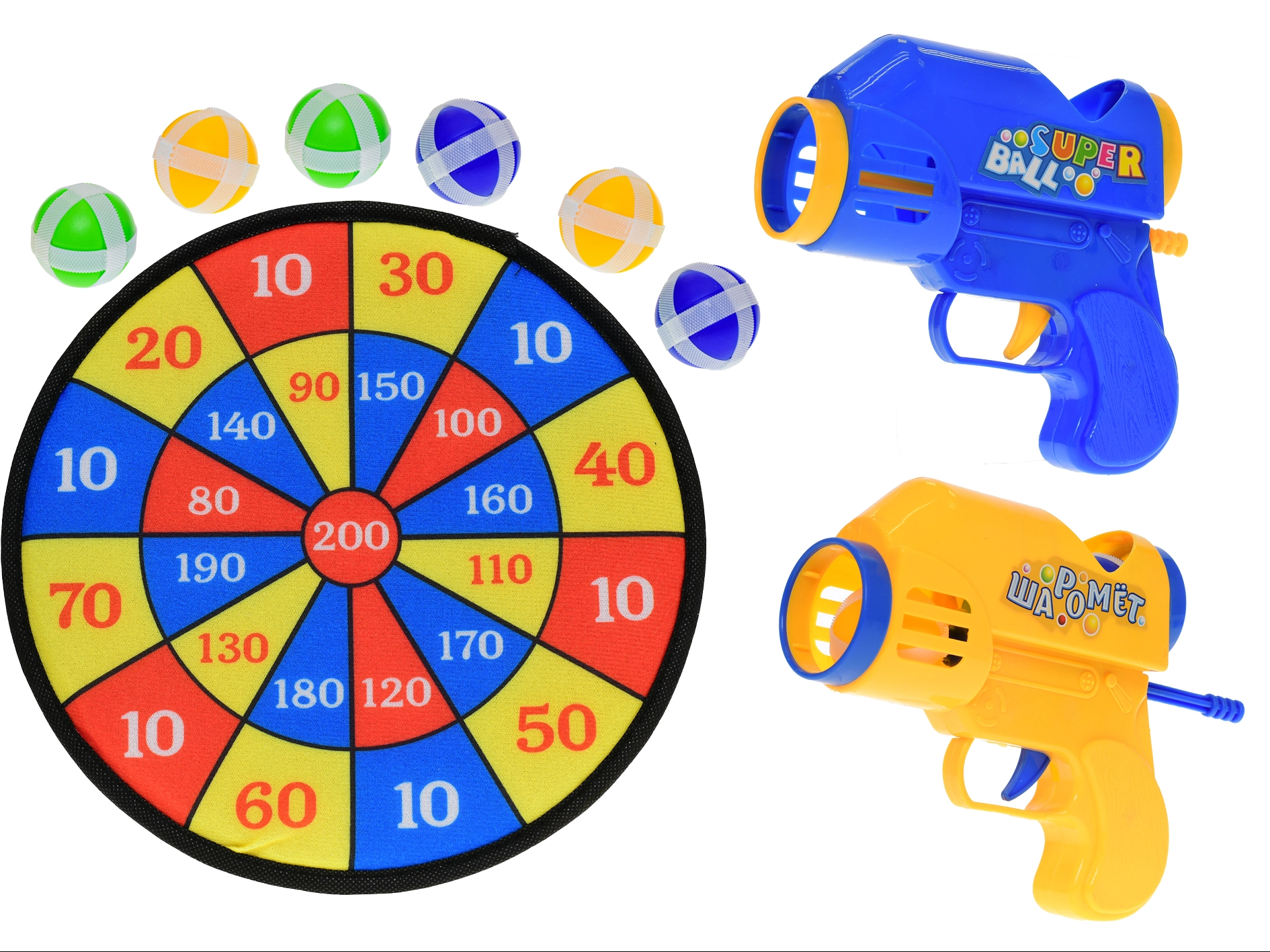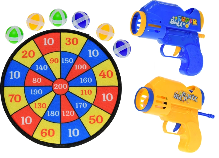 Meta je opremljena omčom za brzo vješanje na zid ili drugu prikladnu površinu. Dva lagana plastična pištolja omogućuju djeci natjecanje u preciznosti te razvijanje koordinacije oko–ruka i strpljenja.