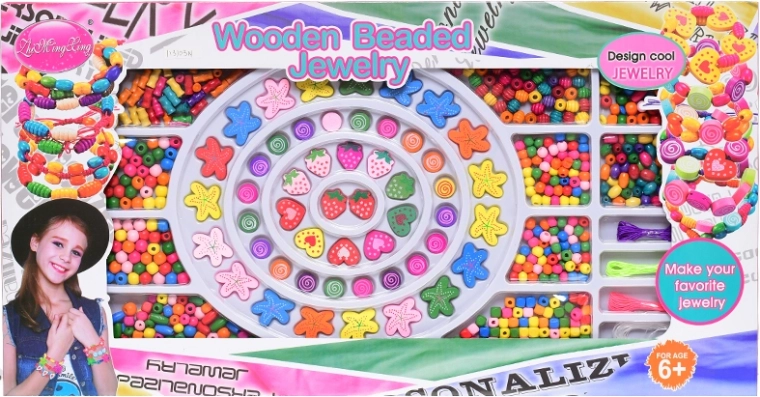Potaknite dječju maštu i spretnost s ovom setom drvenih perlica za nizanje u praktičnoj kutijici. Različiti oblici i boje, uključujući leptiriće i cvjetiće, omogućuju izradu originalnih narukvica, ogrlica i privjesaka. Igračka razvija finu motoriku, koordinaciju oko–ruka i strpljenje te je prikladna za djecu od 6 godina. Ispunjava europske sigurnosne norme.