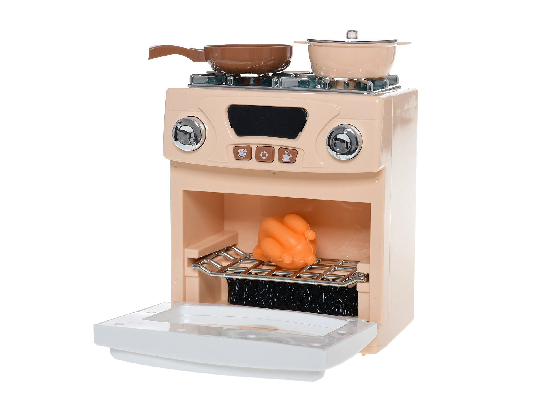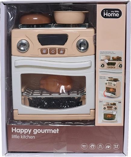 Realistični dječji štednjak s pećnicom razveselit će male kuhare od 18 mjeseci. Nudi svjetlosne i zvučne efekte koji oponašaju pravo kuhanje te razvijaju kreativnost i maštu. Zahvaljujući kompaktnim dimenzijama stane u svaku dječju sobu, a s priloženim dodacima za kuhanje pretvara igru u pravo kulinarsko avanturističko iskustvo.
