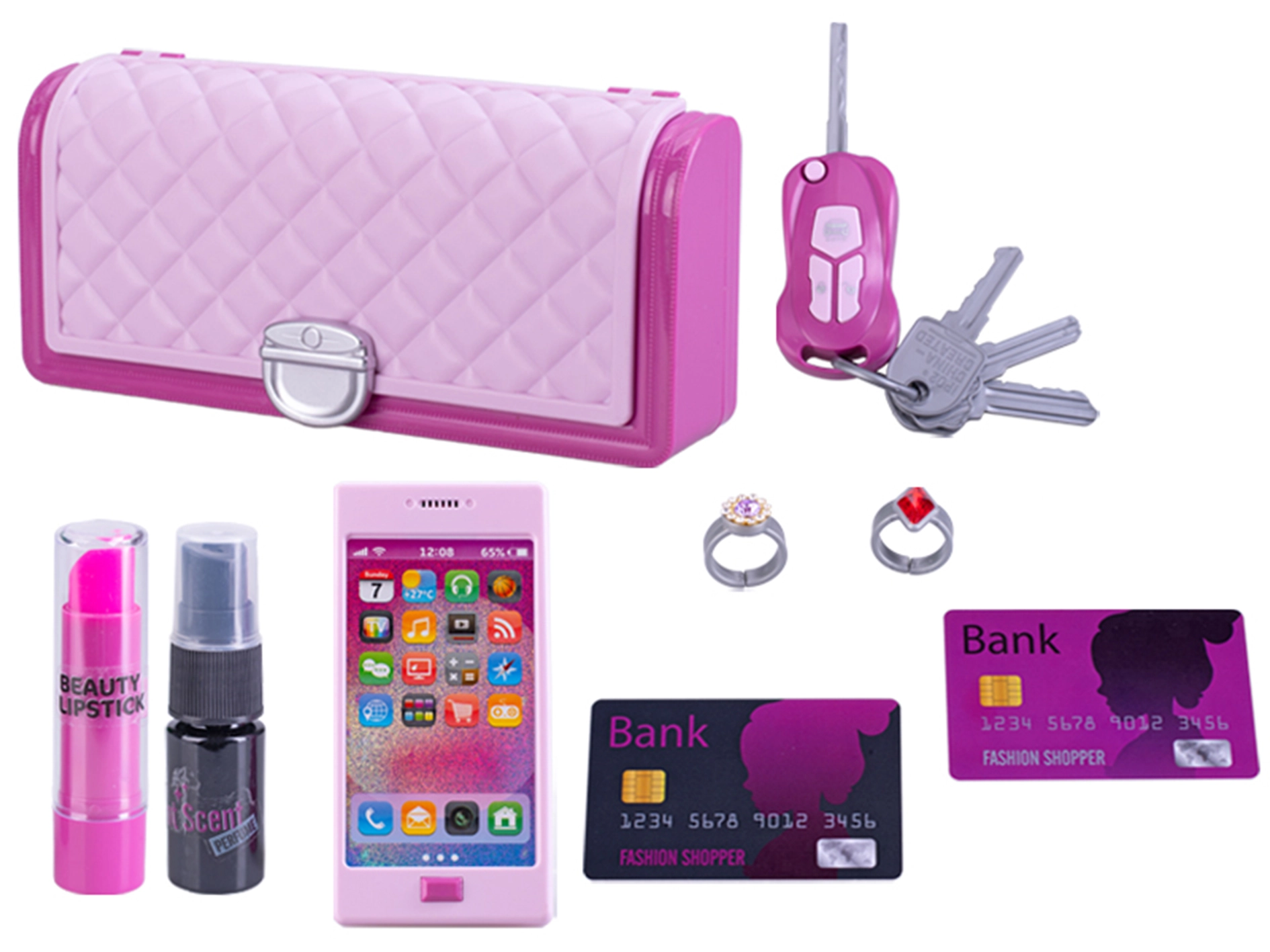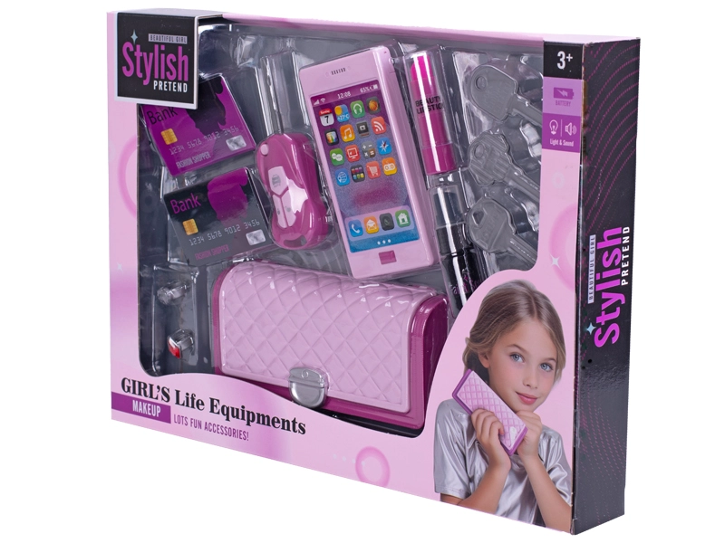 U pakiranju se nalazi sve što male modne zaljubljenice trebaju: ključ od auta, češljić, ukosnice i druge sitnice. Baterije 3× LR41 već su priložene, dovoljno je samo otvoriti i početi se igrati.