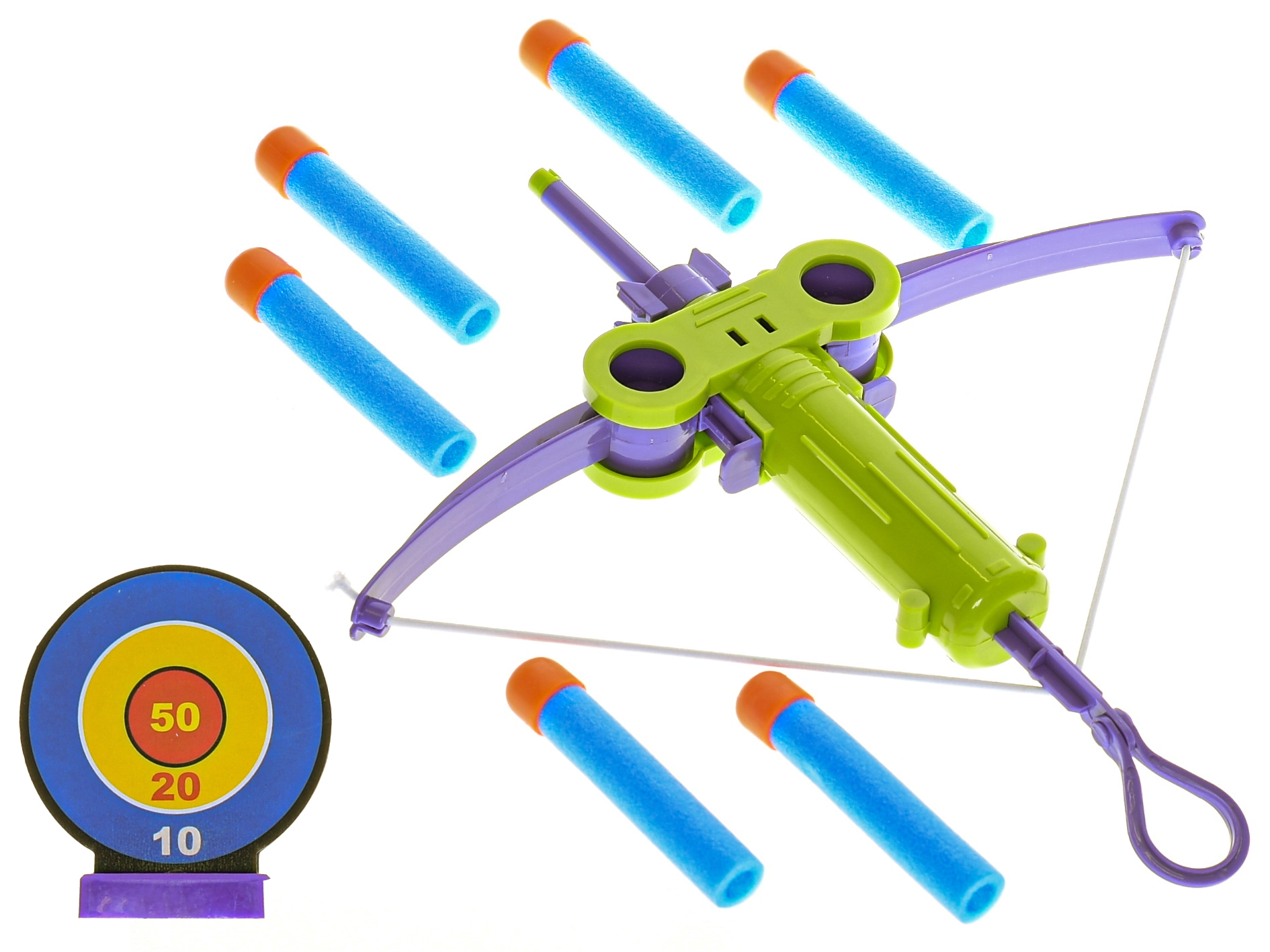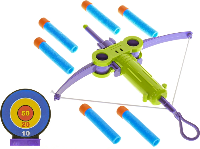 Zabavan i siguran dječji samostrel s metom i šest pjenastih metaka za male strijelce od 3 godine. Podržava motoriku, koordinaciju ruka-oko i koncentraciju. Dostupan u dvije boje – plavoj i zelenoj – za još veće veselje u igri kod kuće i na otvorenom.