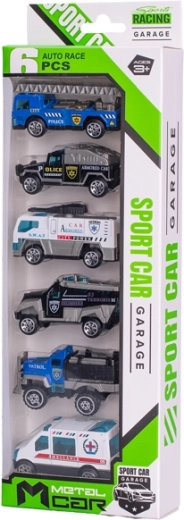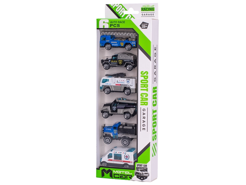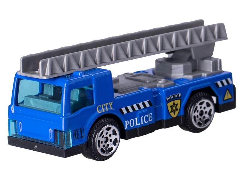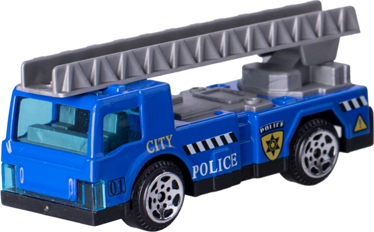 Autići su izrađeni od izdržljivog metala i zahvaljujući slobodnom hodu glatko voze po raznim podlogama. Pakiranje sadrži 6 različitih modela policijskih vozila koji osiguravaju raznolikost igre i razvoj mašte.