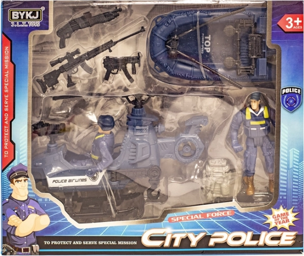 Ovaj svestrani policijski set donosi djeci realistične scenarije spasilačkih i interventnih akcija. Helikopter i čamac detaljno su izrađeni, jednostavni za upravljanje i spremni za napete misije. Figurice policajaca i dodaci daju igri autentičnost te razvijaju maštu i finu motoriku.