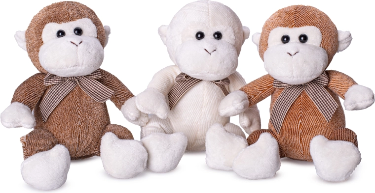 Na izbor su tri stilske boje – bež, svijetlosmeđa i tamnosmeđa – svaka upotpunjena elegantnom mašnom koja igrački daje poseban šarm. Majmunčica je pakirana u kutiji, pa je spremna kao poklon za rođendan, Božić ili jednostavno za razveseliti dragu osobu.