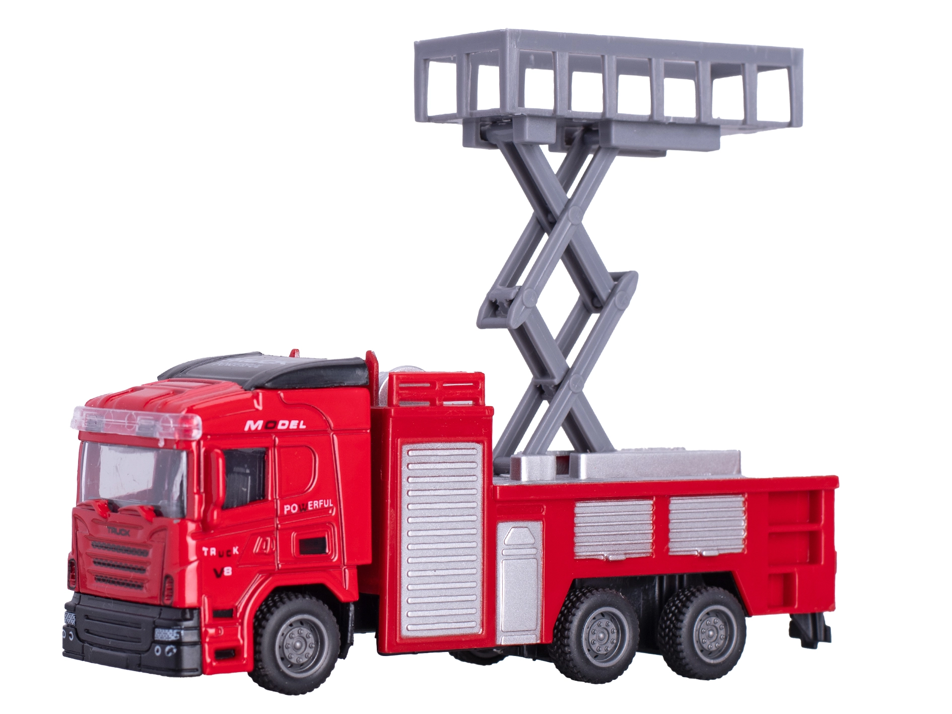 Realistično vatrogasno vozilo duljine 13 cm u mjerilu 1:50 razveselit će sve male vatrogasce. Zahvaljujući metalnoj konstrukciji s plastičnim detaljima izdržljivo je i lagano. Funkcija povratnog pogona dodaje na zabavi i autić se nakon povlačenja sam pokreće. Dostupne su 3 varijante – s vodenim topom, platformom i ljestvama. Prikladno od 3 godine i pakirano pojedinačno u kutiji – idealno kao poklon.