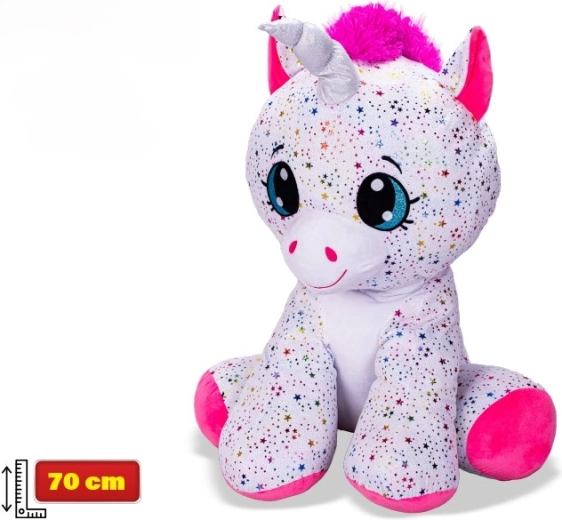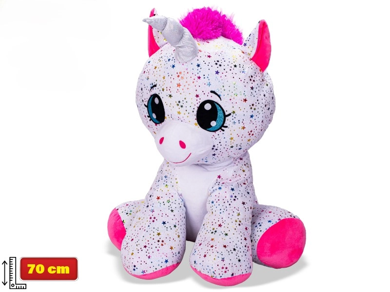 Ogromni sjedeći jednorog Star Sparkle pretvara svaku dječju sobu u bajkovito kraljevstvo. Zahvaljujući iznimno mekom plišu poziva na maženje, dok svjetlucavi akcenti daju igrački magičan izgled. Sjedeci dizajn osigurava stabilnost pri igri i izlaganju na polici.