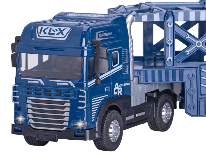 Realističan prijevoznik automobila u mjerilu 1:24, duljine 40 cm, kombinira metalne i plastične elemente za izdržljivost i detalje. Zahvaljujući inercijskom pogonu glatko kreće naprijed bez potrebe za baterijama za vožnju. Za zabavu se brinu svjetlosni i zvučni efekti, napajani 3× LR44 baterijama u pakiranju. Dostupan u dvije boje – plavoj i narančastoj, idealan za djecu od 3 godine.