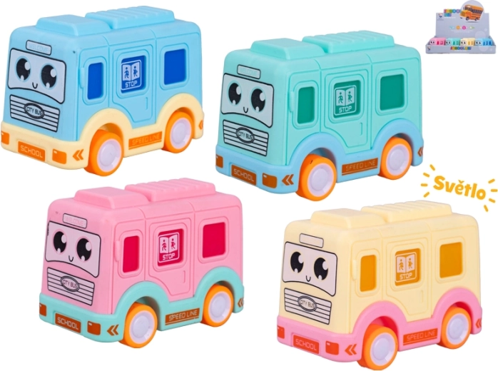 Kompaktna igračka za male vozače: ovaj autobus duljine 8,5 cm nudi inercijski pogon za glatko kretanje naprijed i svjetlosne efekte za još veću zabavu. Idealan za djecu od 3 godine, potiče razvoj fine motorike i mašte. Dostupan u 4 boje – plava, ružičasta, zelena i žuta.