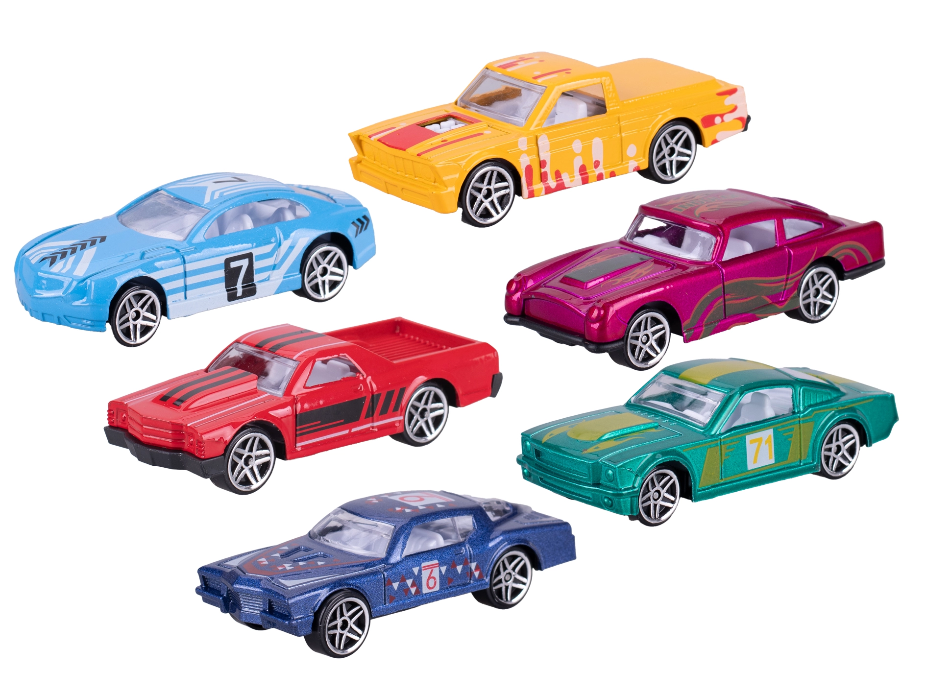 Kompaktni trkaći autić duljine 8 cm, izrađen od kombinacije metala i plastike, nudi izdržljivost, dug vijek trajanja i slobodan hod za glatku vožnju po raznim površinama. Dostupan je u 6 atraktivnih boja, idealan za igru, skupljanje i kao sjajan poklon za djecu od 3 godine naviše.