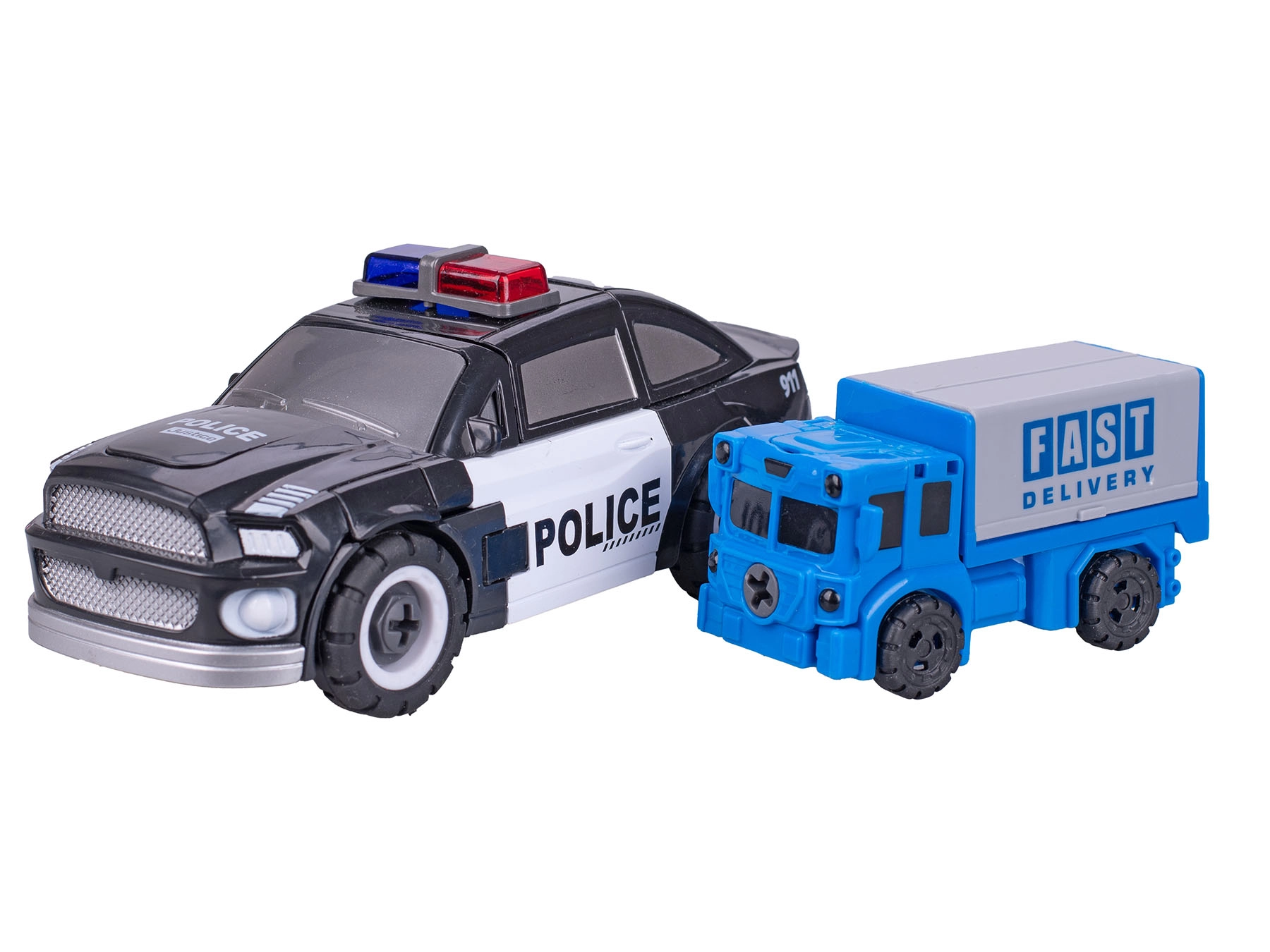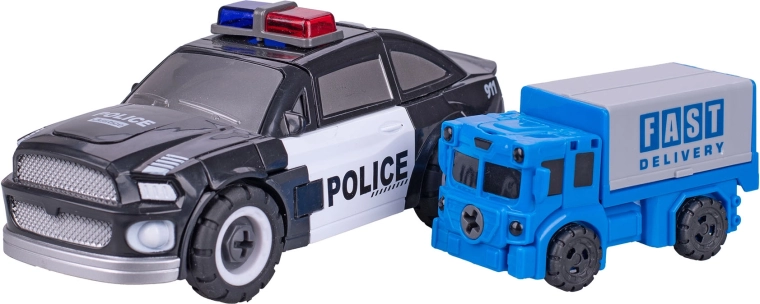 Ovaj kreativni set donosi dva omiljena vozila – policijski auto i vatrogasni auto – koja djeca u trenu mogu pretvoriti u akcijske robote. Zahvaljujući jednostavnom mehanizmu, mali junaci uživat će u neprekidnoj igri bez nepotrebnih zastoja i stvarati vlastite napete priče iz svijeta službi spašavanja.