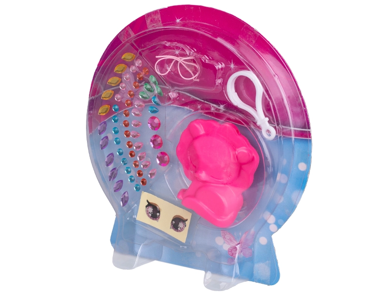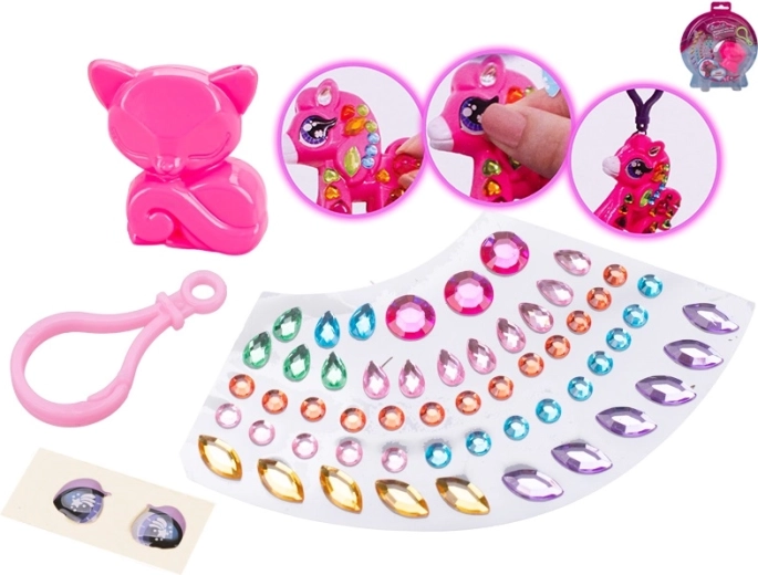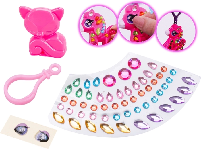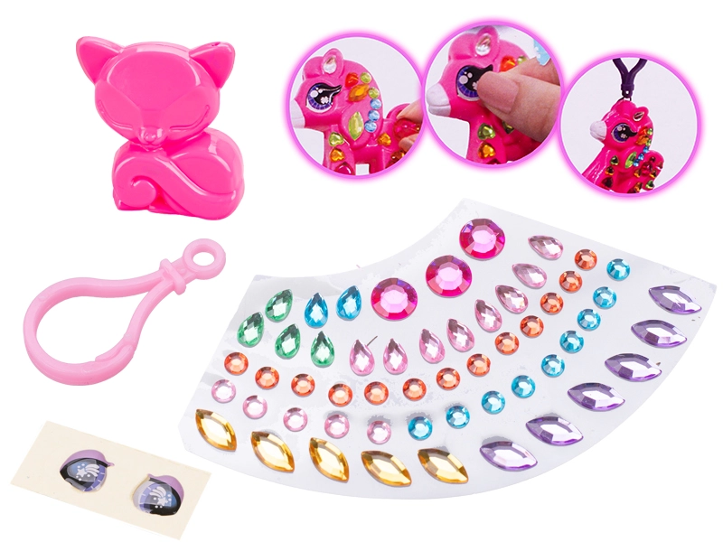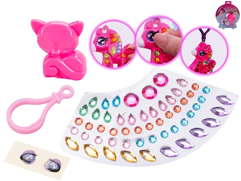 Ovaj glamur set idealan je za male kreativce koji vole izradu i personalizaciju dodataka. U pakiranju se nalazi sve potrebno – plastična životinjica (6 cm), praktični karabiner za pričvršćivanje i šareni samoljepljivi kamenčići uključujući samoljepljive oči. Ukrašavanje je jednostavno i zabavno, a rezultat je originalan privjesak za ključeve prema vlastitom ukusu.