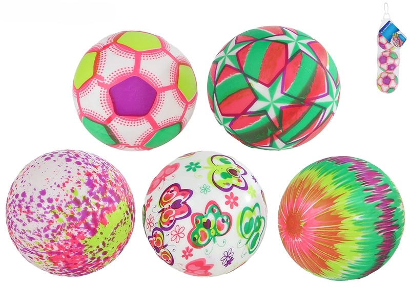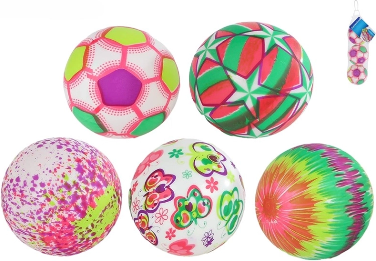 Raznoliki i kontrastni uzorci (zvijezde, razmazane točkice, razmazane pruge, nogometni uzorak i leptiri) privlače pozornost i potiču vizualnu percepciju. U pakiranju se nalazi praktična mrežica u kojoj loptice lako ponesete na igralište ili pospremite kod kuće.
